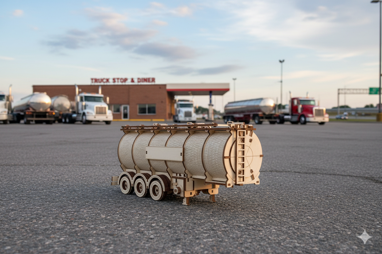 Modellen kopierar troget en riktig tankvagnssemitrailer – från tankens form till chassit. Tack vare 251 exakt skurna bitar av högkvalitativ plywood kommer du att njuta av timmar av monteringslek utan behov av lim. När den väl är monterad blir den inte bara en dekoration, utan också ett funktionellt tillägg till Road King-lastbilsmodellen.